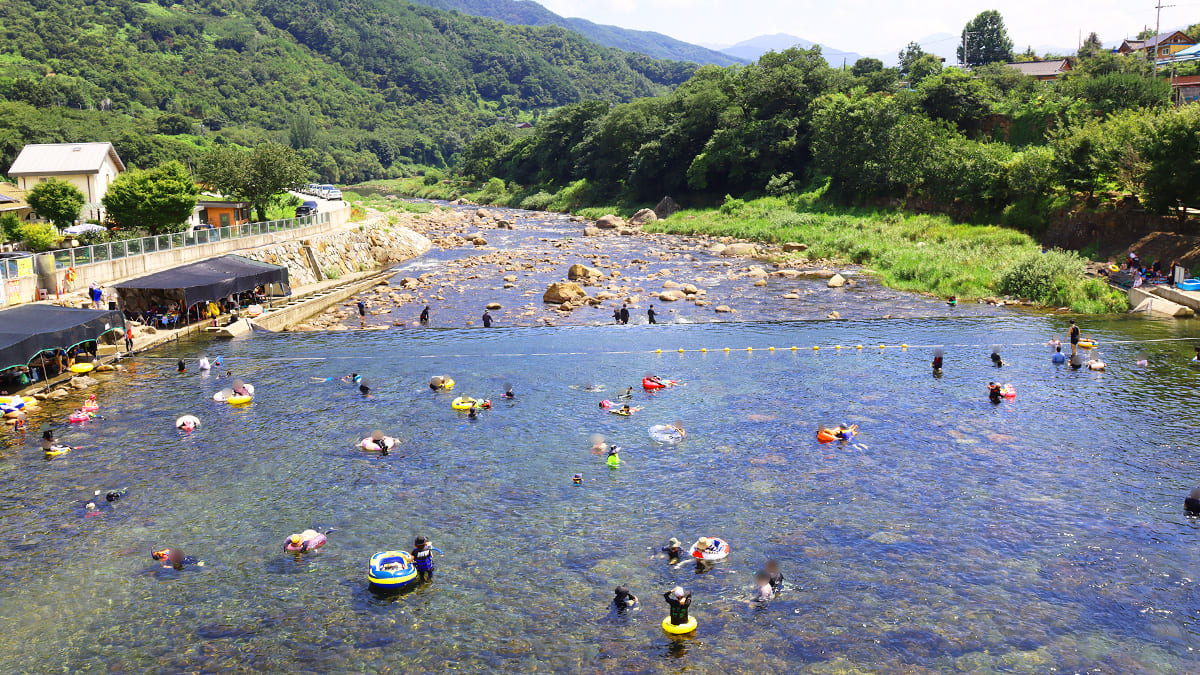 검색해 보시면 주변에 펜션 등도 많이 있어, 숙박과 은어낚시를 겸한 1박 2일이나 2박 3일 여행 코스로 짜보셔도 좋습니다. 주변 지류로 수심이 전반적으로 깊지 않은 것도 큰 장점 중 하나입니다.